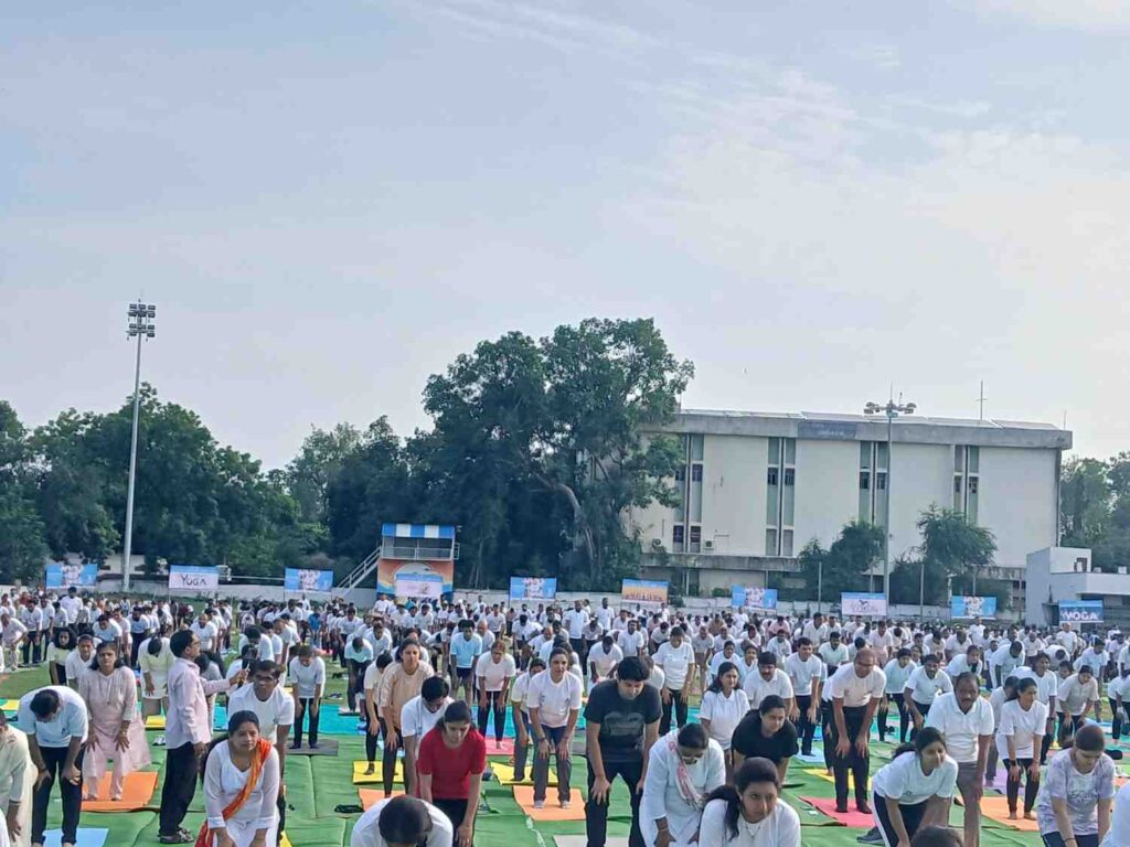 रेल्वे क्रीडांगणावर हजारो नागरिकांनी केला केंद्रीय , राज्यमंत्री व इतर अधिकारी वर्गासोबत सामूहिक योगाभ्यास